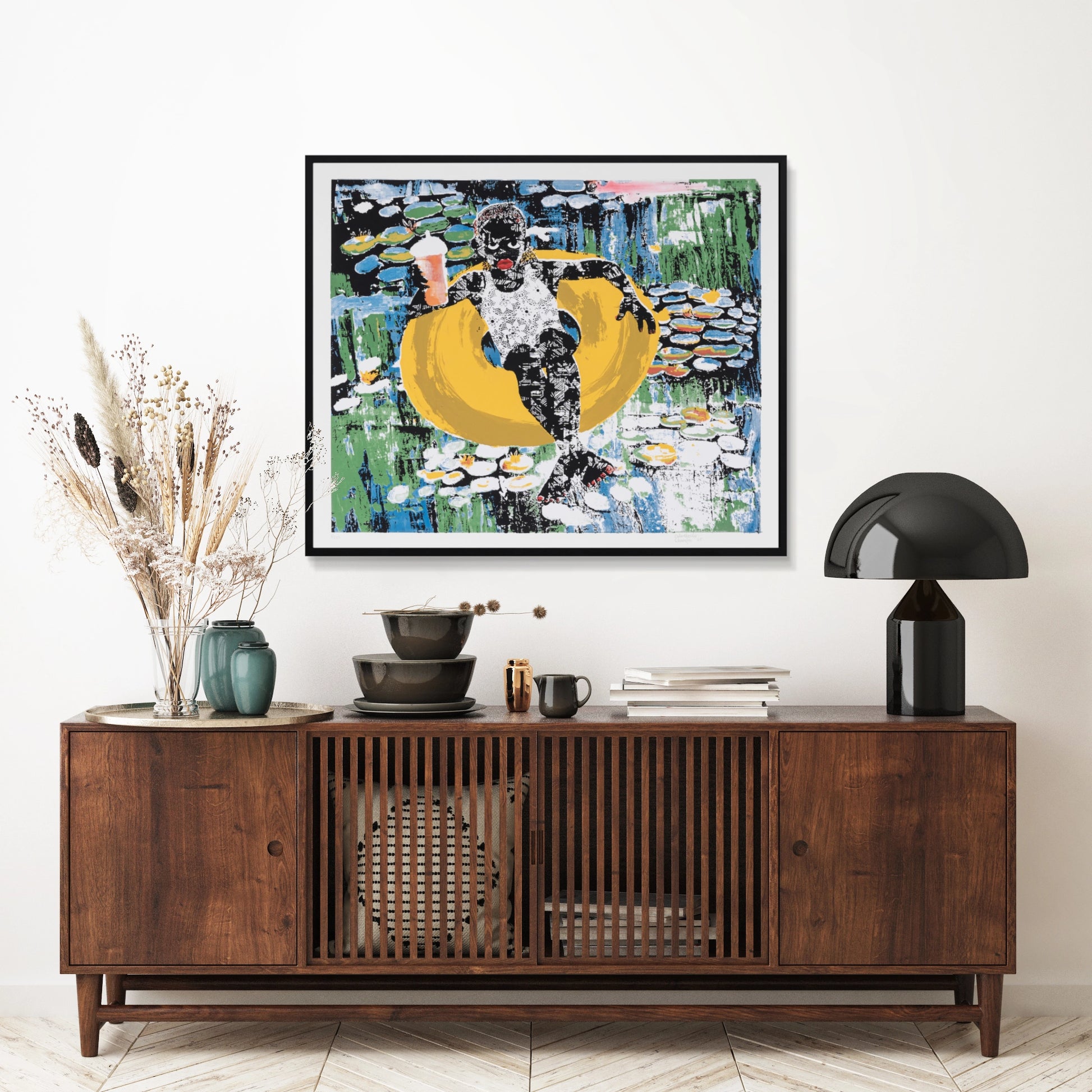 Chioma at the pool è la prima serigrafia ufficiale di Odinakachi Okoroafor, realizzata in collaborazione con Trium Art Gallery e stampata a mano con una complessa procedura a cinque colori su carta Somerset TS RW 410 gsm, una delle carte d’arte più pregiate al mondo.
